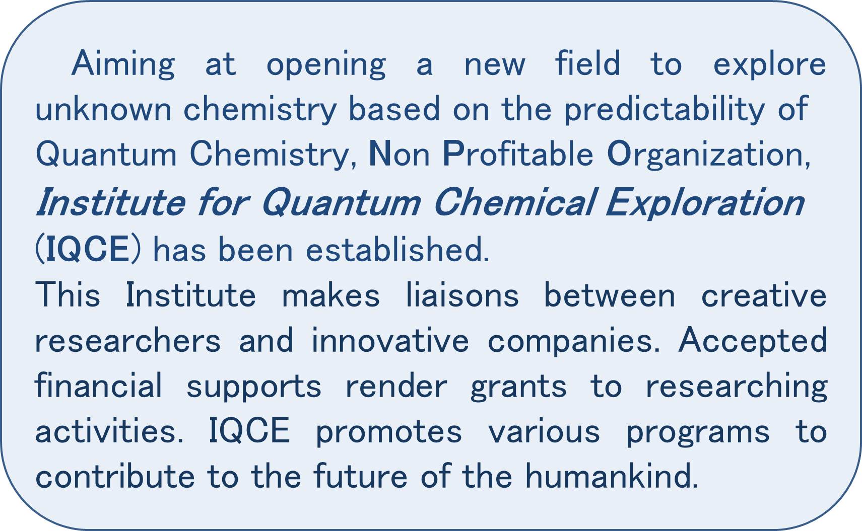 Promoted by : NPO Institute for Quantum Chemical Exploration